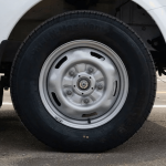 - Suspensión trasera de eje rígido con ballestas, amortiguadores y barra estabilizadora.