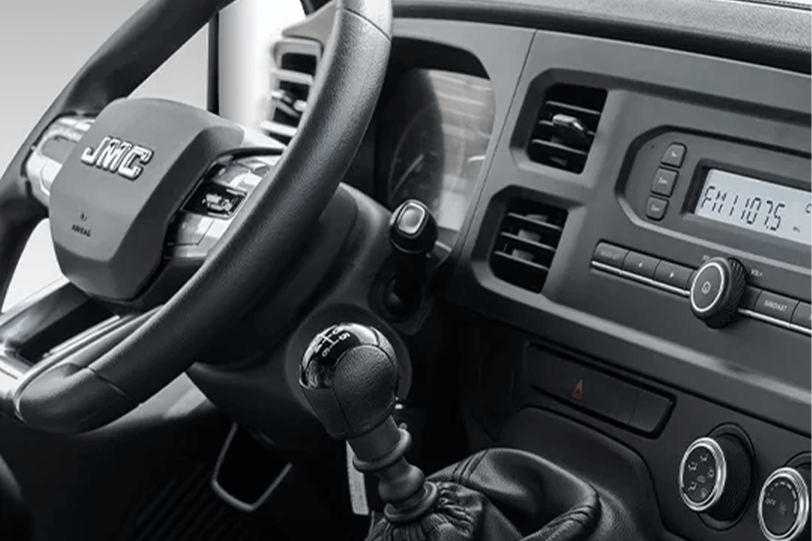 Cabina cómoda y funcional con pantalla multimedia, aire acondicionado y todo lo necesario para un manejo práctico y productivo.