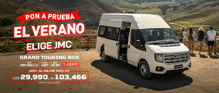 Llévate tu JMC Touring Bus con precio de cierre $29,990 (S/ 103,466) que incluye un bono de descuento. Promoción vigente del 01/01/2026 hasta…